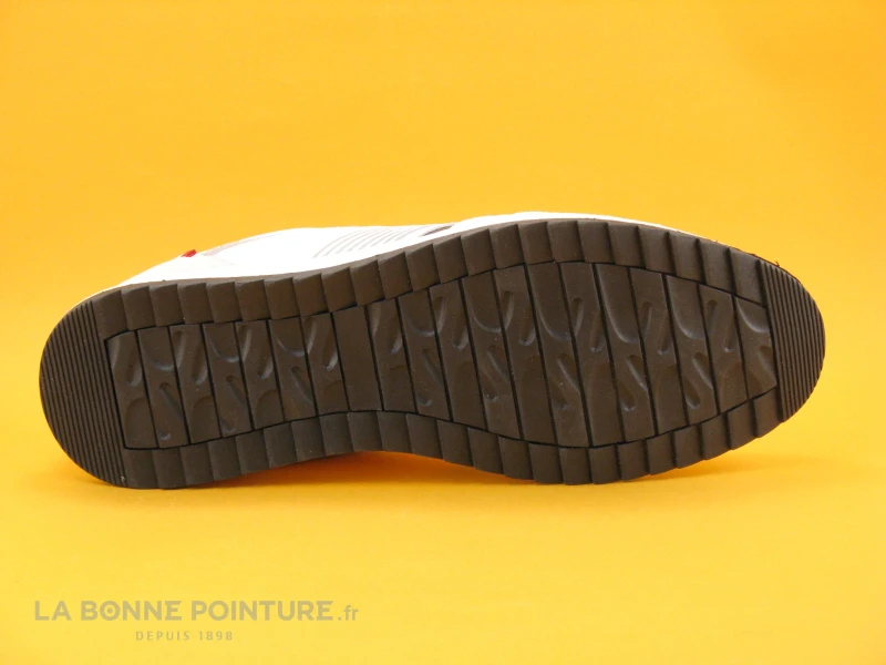 La semelle de marche des baskets ville Homme est blanche sur une base noire et crantée.