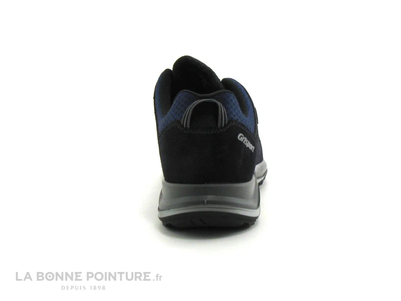 Cette basket rando Homme Grisport est en cuir et textile respirant noir et bleu marine, avec un peu de gris.