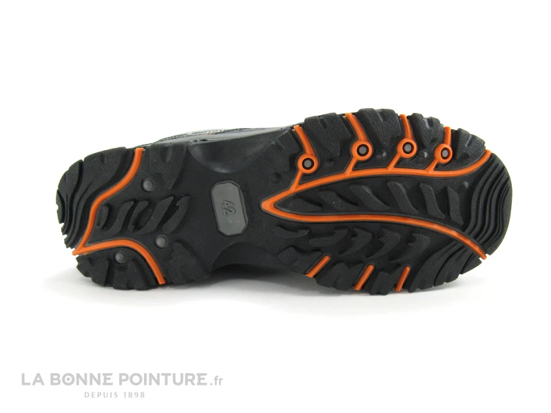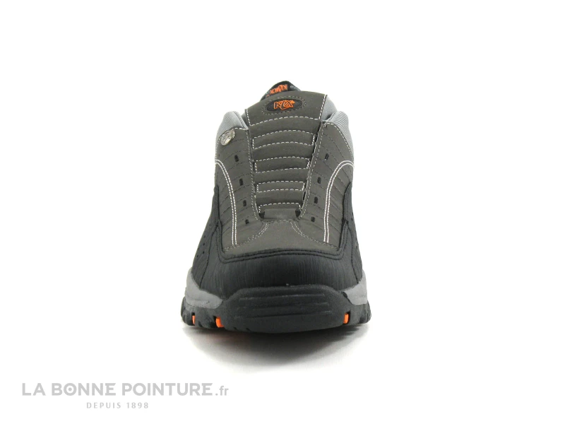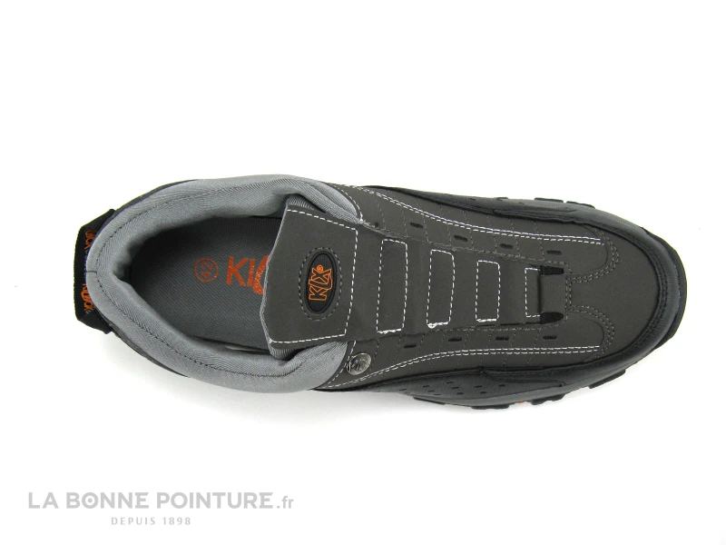 Une inscription Kilwox Outdoor s’affiche en gris et orange sur le côté des chaussures, ainsi que sur une bride au niveau du contrefort.