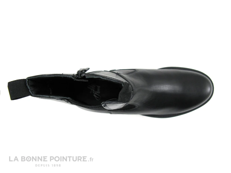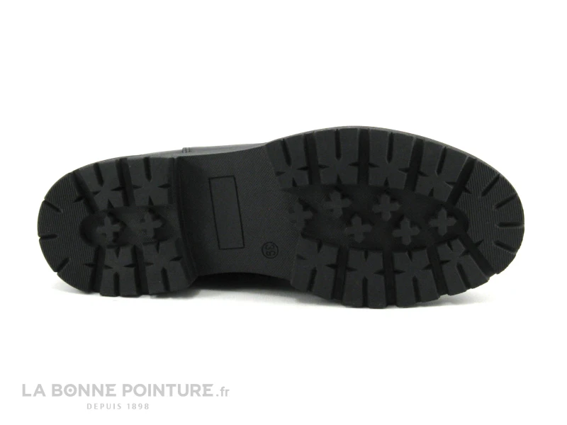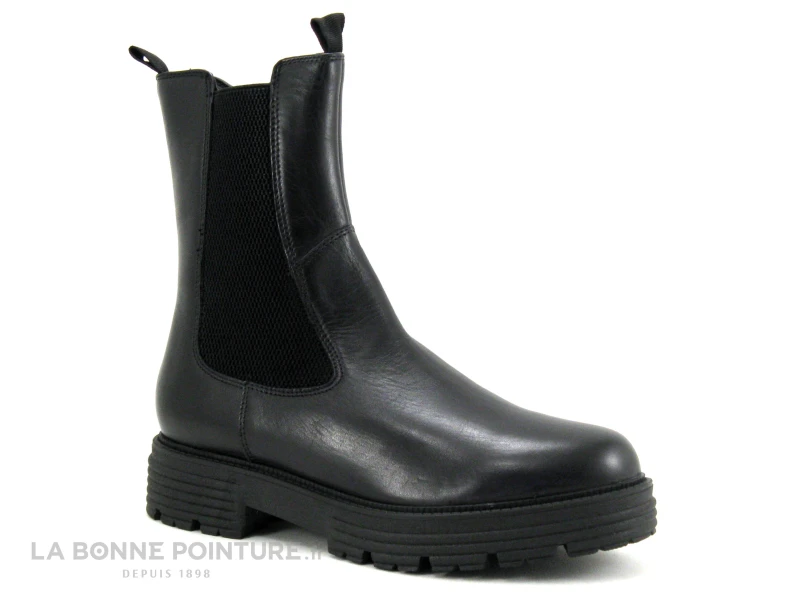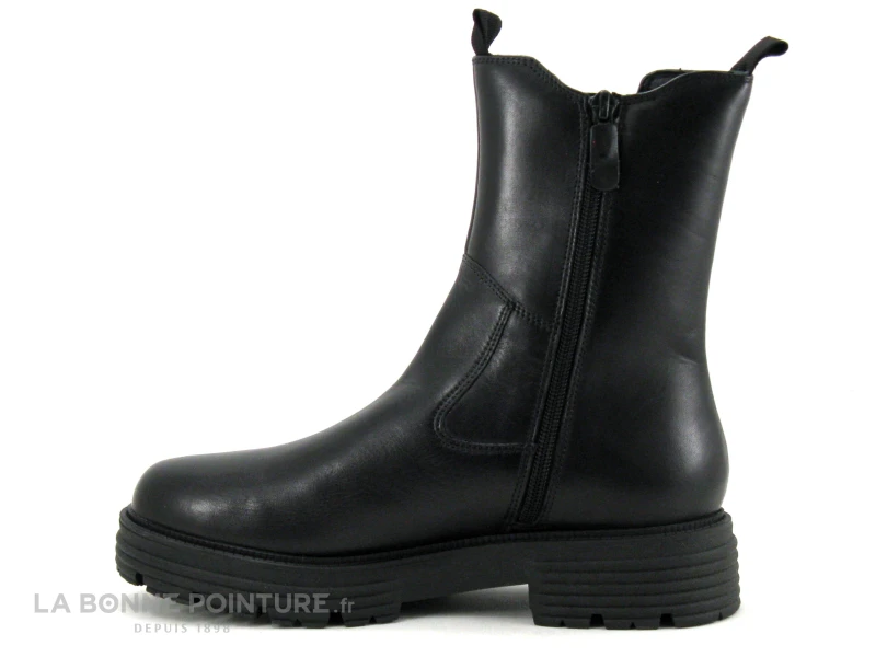 Ces boots mode Femme sont en cuir lisse noir, avec un large élastique noir qui habille le côté externe et permet d’être plus à l’aise dans la chaussure..