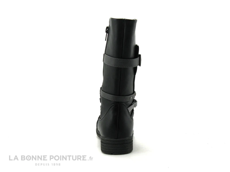 Wipop WOLFFY Noir – Boots Fille Noires – Oeillets Fleurs Argent